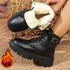 Fashion Women Boots Comfy Low Heels Leather Shoes Fashion Lace Up Platform Combat Shoes Woman Winter Warm Short Plush Ankle Boots Women