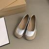 Fashion Women's Soft Leather Ballet Flats Foldable Soft Sole Short Square Toe Granny Shoes Retro Versatile Trendy Shoes for Women