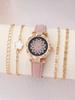 No gift box; Flower petal diamond dial, good luck alloy case, diamond belt ladies watch full diamond bracelet 2-piece set.