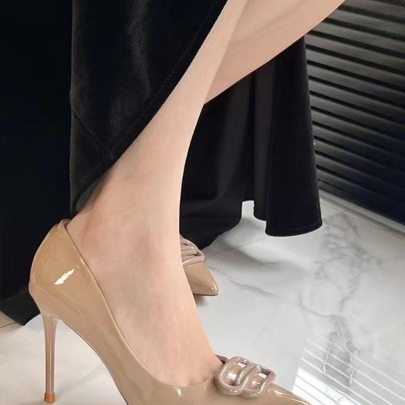 Black patent leather high heels new pointed thin heels sexy temperament celebrity style single shoes women