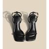 Fashion Black Ankle-Strap Buckle Sandal Summer Square Toe Ladies Stiletto High Heel Shoes Sexy Solid Thin Band Sandalias De Mujer Verano