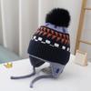 Autumn and winter boys and girls rhombus windproof ear hats baby knitted thickened wool hats winter children's warm hats