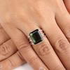 Wedding Engagement Anniversary Promise Gift – Natural Black Onyx and Real Peridot Ring, Vintage Art Deco Yellow Gold Plated Handmade Jewelry