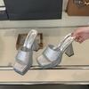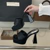 Fashion Blue Slippers Heeled Sandals Black Platform High Heels Summer Shoes Women Ladies Chunky Slippers Fashion Sandalias Mujer