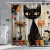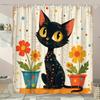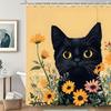 Black Cat and Sunflower Shower Curtain Retro Watercolor Cartoon Cat Design Polyester Fabric Bathroom Decoration with Hook