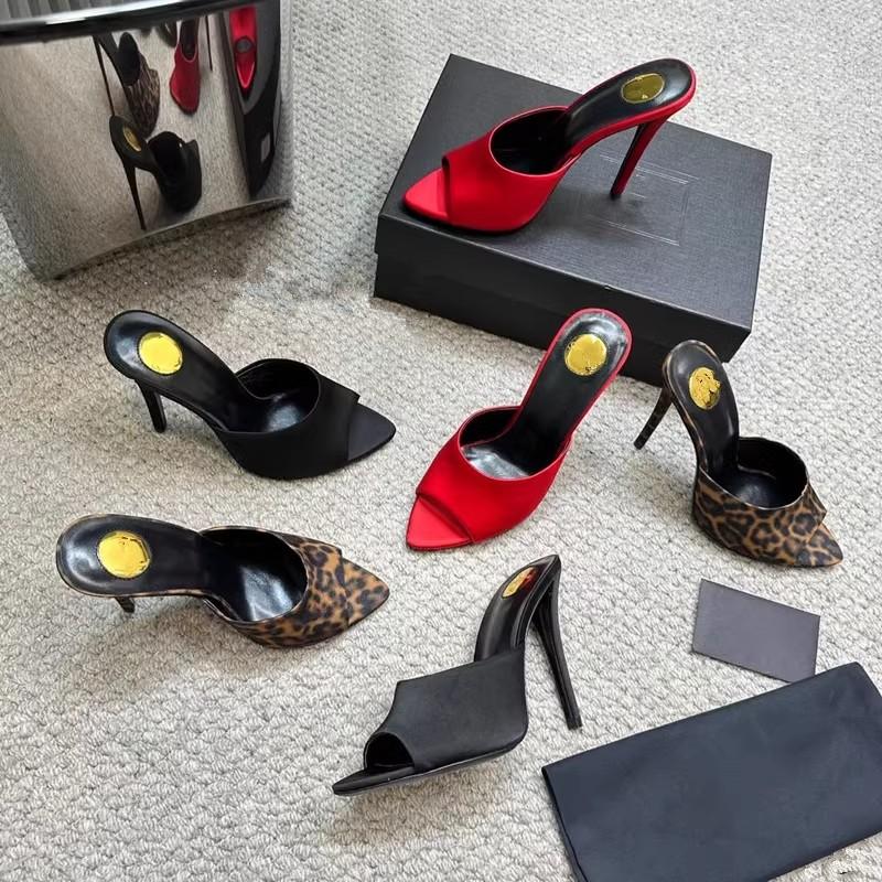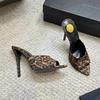 Fashion Spring/Summer 2025 Leopard Print Pointed-Toe High Heels, Women'S Thin Heels, Open-Toe Fish-Mouth Sandals, Muller Slippers