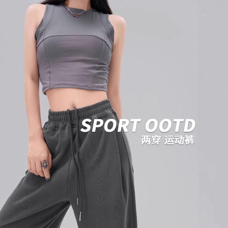 Grey sweatpants women's spring and autumn new straight casual leggings sweatpants small loose wide-leg pants
