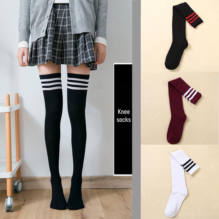 Academy Style Women's Striped Knee-High Cotton Socks - Three Stripes, Perfect for Dance Performance