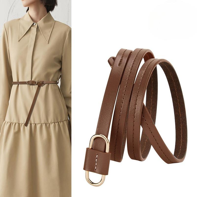 Women's Soft Leather Belt Cowhide Belt Genuine Leather Thin Belt Without Punching Leather