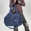 Women's fashion washed old Spice Girl locomotive bag multi-pocket Japanese and Korean trend shoulder bag