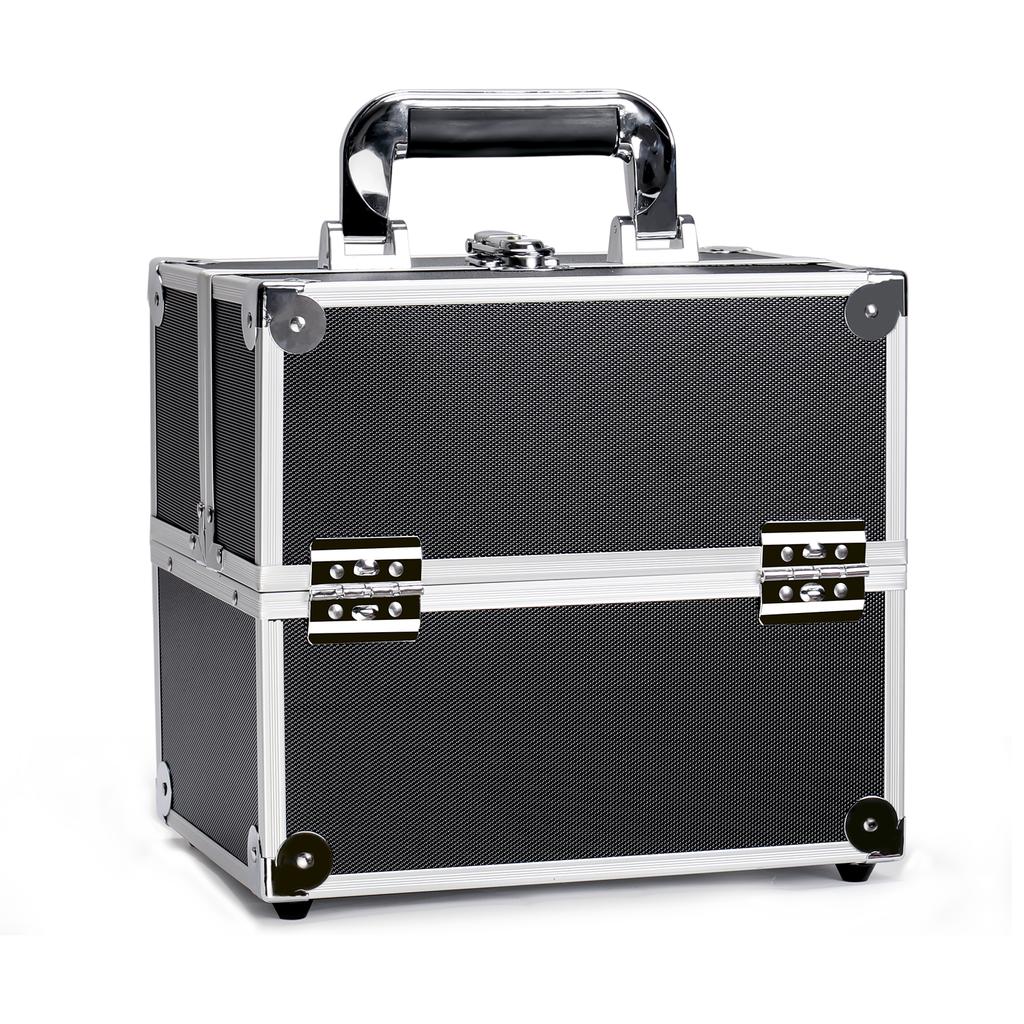 Portable Aluminum Cosmetic Case, Lockable Professional Makeup Box with Trays