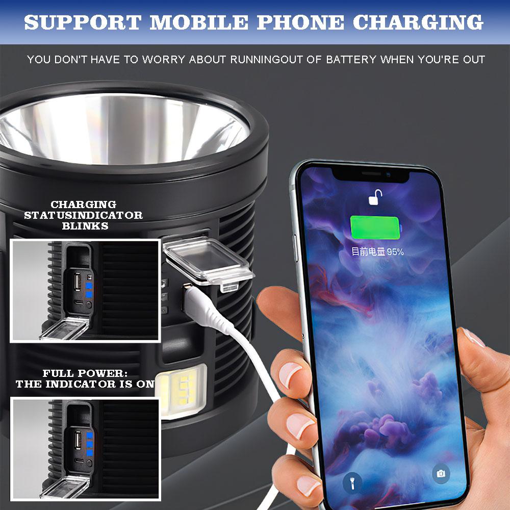 Powerful USB Rechargeable Flashlight Solar Waterproof LED Portable Light 3 Gear Charge 900000000 Searchlight Long Range Lamp