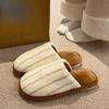 Women's Winter Contrasting Cotton Slippers with Striped Home Slippers