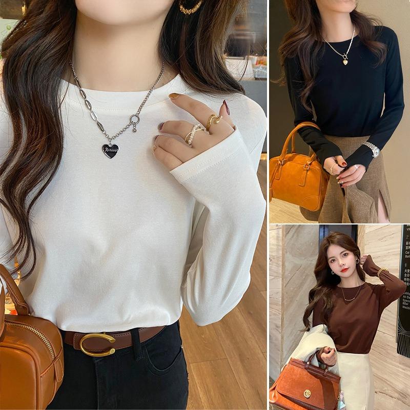Women's Regular Shoulder Base Layer Top for Autumn Loose Long Sleeve T-Shirt Inner Wear Autumn Women's Top