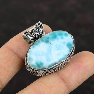 Larimar Gemstone 925 Sterling Silver Jewelry Pendant 2.01"