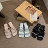 Su Yinyin has the same rhinestone word with thick heels, slippers, feminine temperament, fairy square head versatile high heels, sandals to wear outsi