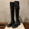 Cowhide~ Grape Mom same retro boots women's double buckle belt but knee boots side zipper thick heel knight boots