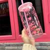 1PC Bow Printed Plastic Water Bottle with Straw and Lid Coffee Cup Tumbler Beverage Transparent Cold Drinks Beverage DrinkingCup