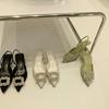 Norwegian Princess Rhinestone Square Buckle Pointed Back Empty High Heel Fairy Sandals Commuter Wedding Shoes