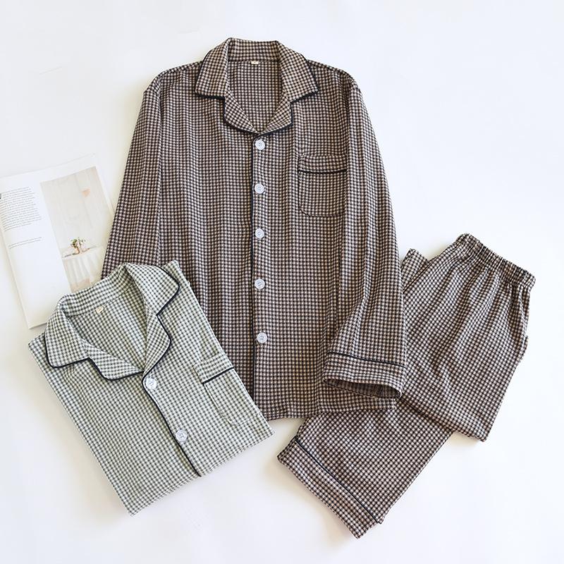 Men's Pajama Set Fall Winter Thick Warm Long Sleeve Tops Pants Pajama Sets Soft Plaid 2 Piece Button Down Lounge Set for Men Lapel Comfort Sleepwear