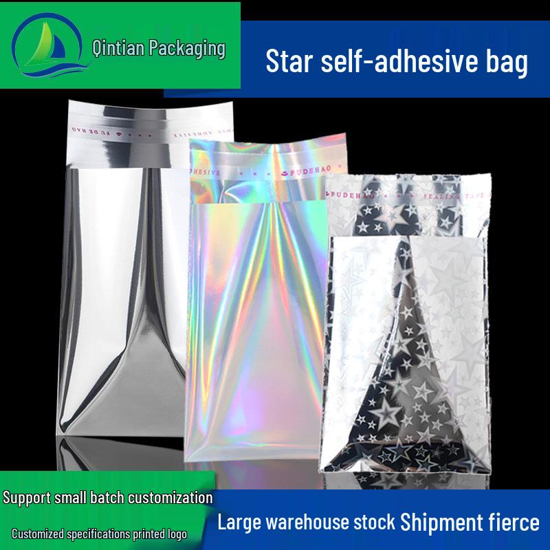 Colorful Opaque Laser Self-Adhesive Star-Patterned Button Bag in Silver, Small Size, Self-Sealing