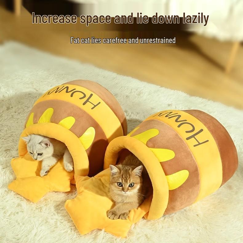 Warm Honey Jar Pet Bed: Cozy Autumn/Winter Cat & Dog Cushion House