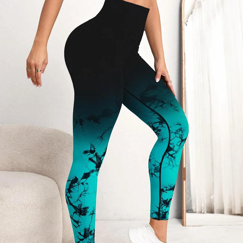 Women's High-Waist Gradient Tie-Dye Yoga Pants - Elastic, Hip-Lifting & Quick-Drying Fitness Wear