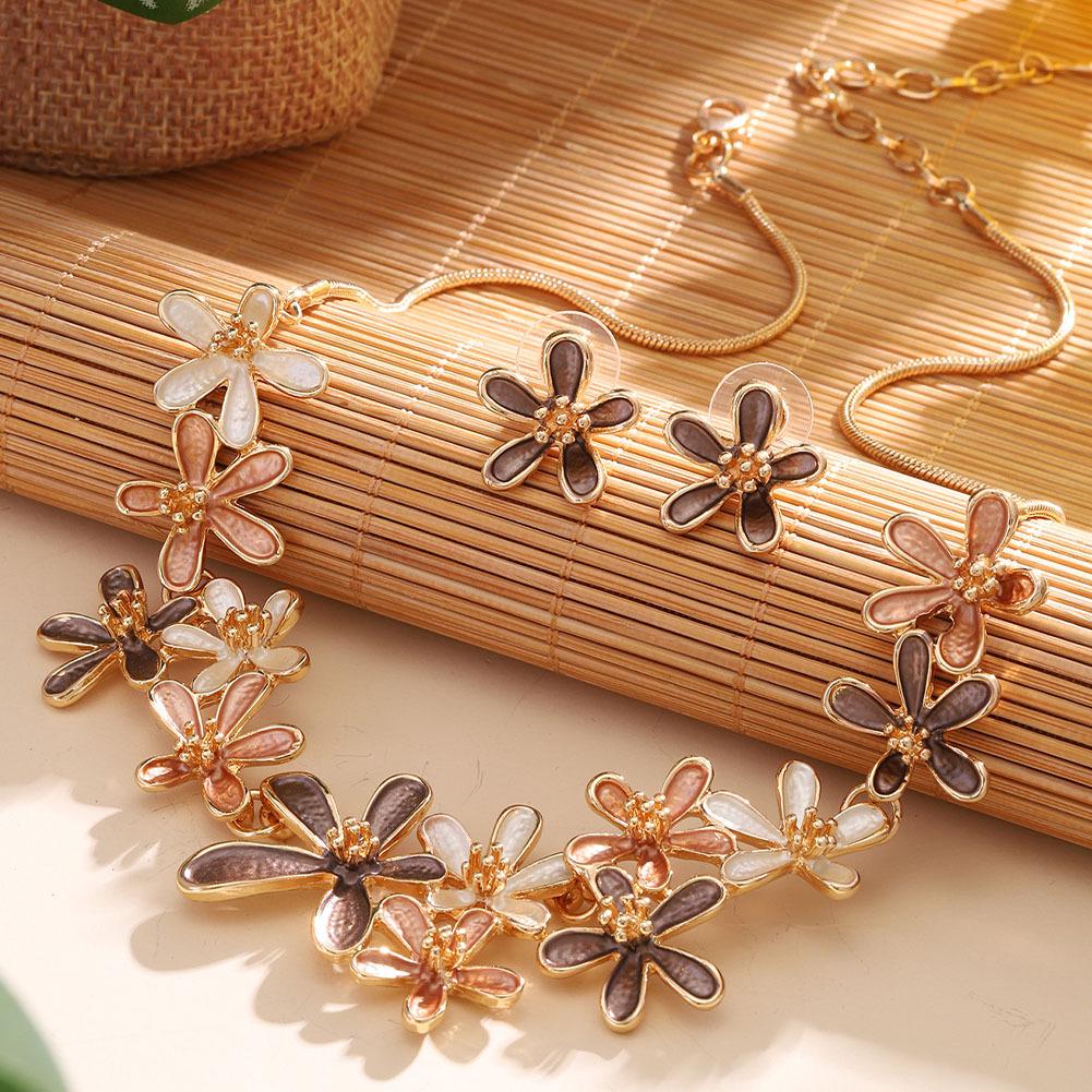 Enamel Set: Zinc Alloy Floral Necklace & Earrings for Women