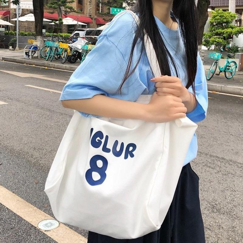 Spring and summer new printed canvas bag women's niche design large-capacity shoulder bag lazy atmosphere tote bag