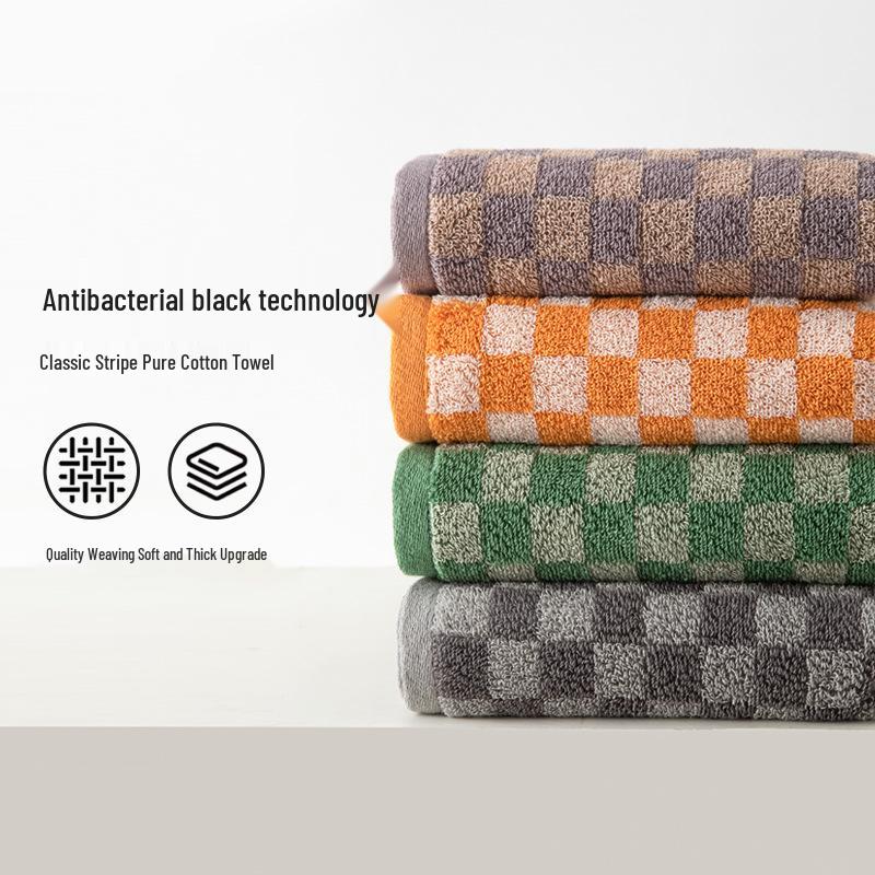 100% Cotton Checkerboard Towel - Absorbent, Thick, and Soft (34x75cm)