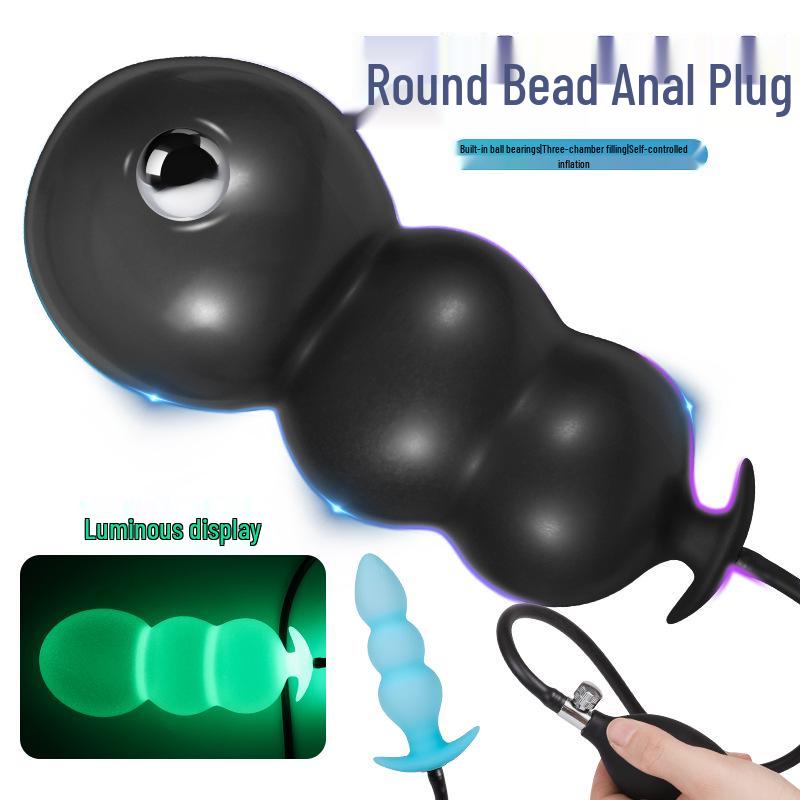 Extra Large Luminous Inflatable Anal Plug with Rolling Ball for Male/Female Use