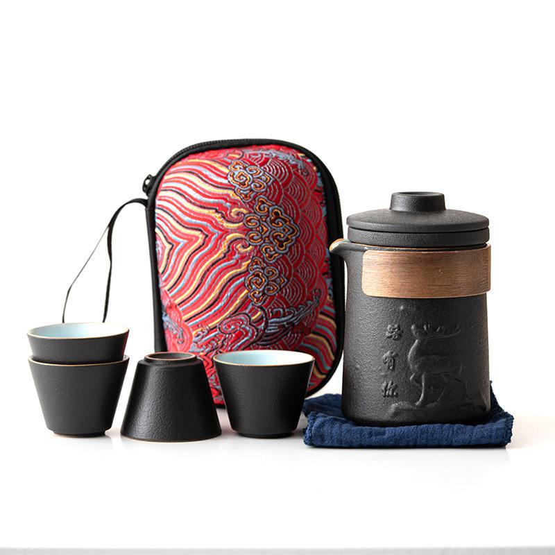 Portable storage travel tea set, coarse pottery Japanese-style express cup, one pot of four cups, a complete set of anti-scalding teapot teacups