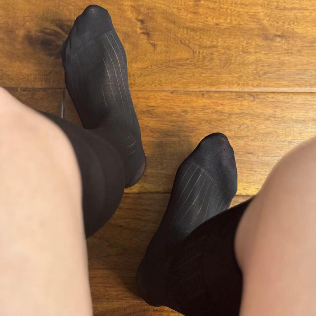 Zhou Men's Silk Nylon Stockings - Striped, Mid-Length, Business Formal Wear