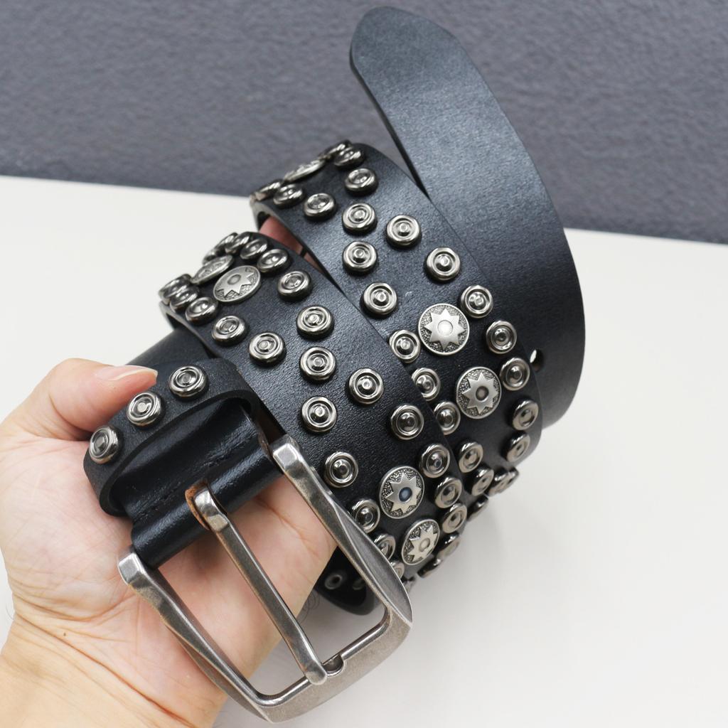 Belt Western Rivet Belt Genuine Leather Star Hollow Gothic Heavy Industry American Belt