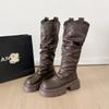 Brown slim British thick heel platform long knight boots women's shoes 2025 new retro heightening v-port stacking boots