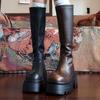 Black boots women's 2025 new spring and autumn winter thick-soled knee-high knight boots small long boots