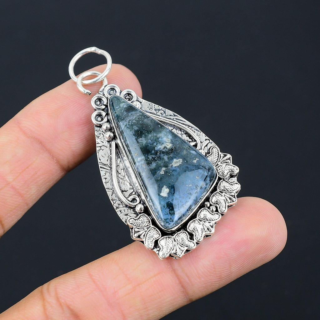 Daughters Day Deal Natural Solar Moss Agate Wife Pendant Jewelry Sterling Silver