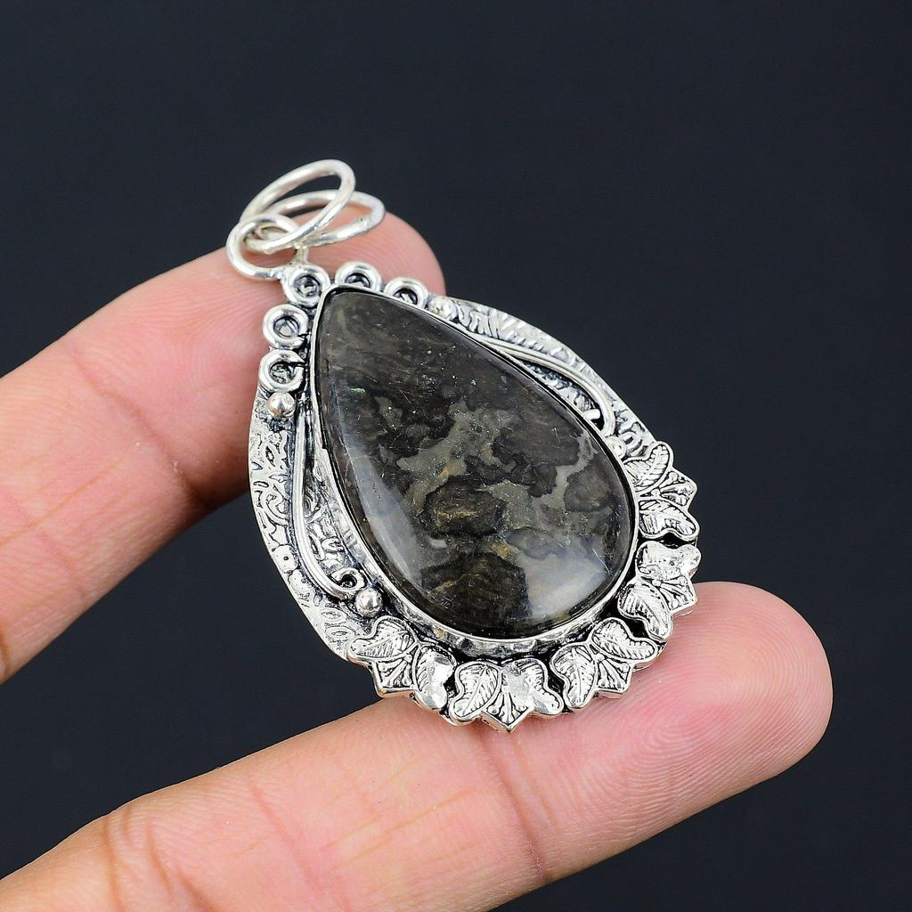 Daughters Day Sale Natural Gabbro Jasper 925 Sterling Silver Wedding New Pendant