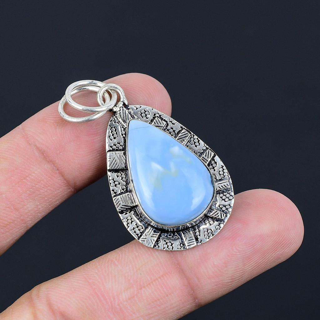 925 Sterling Silver Owyhee Blue Opal Stone Wedding Boho Engagement Wife Pendant
