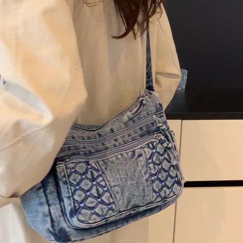 Denim Crossbody Bag for Women with Multi - Pockets & Quilted Detail, Lightweight & Stylish Shoulder Purse