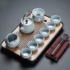 Business Gifts Ru Kiln Qingshan Tea Set Retro Light Luxury Set with Tea Tray Household Tea Souvenir