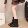 French and simple~! Leather small square head bevel heel wide mouth boots wide tube circumtire cowhide boots women