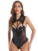 New Sexy Patent Leather Halter Lace Button Bodysuit Sex Set