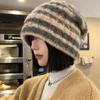 Autumn and Winter Striped Color-blocking Hat for Women Versatile Wool Hat Ear Protection Warm Pullover Hat Outdoor Riding Cold Proof Knitted Hat
