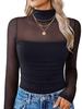 Women's Semi High Neck See Through Long Sleeved T-shirts with Sexy Mesh Top