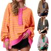 Women's Fashion Striped Round Neck Long Sleeve Button Top Color Blocked Pullover Sweatshirt Top