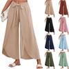 Women's Elastic Waist Irregular Hem Wide Leg Casual Pants Solid Color Loose Straight Pants
