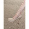 1633-1 Super high heel black pointed single shoes women's new light mouth thin heel sexy soft surface temperament single shoes women's shoes