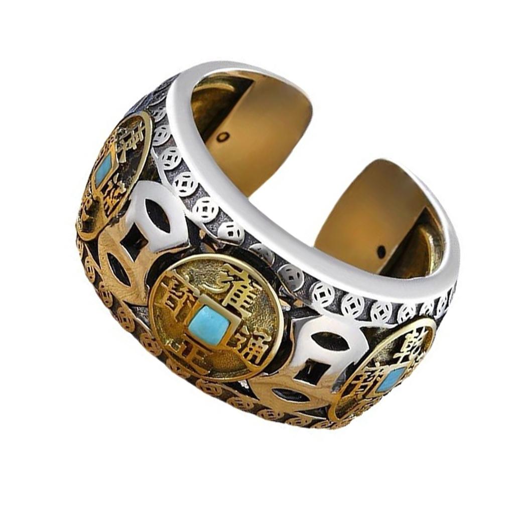 Rotating Five Emperor Coins Ring Adjustable Spinning Design For Anxiety Relief Stress Reliever Jewelry