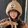Cute Funny Hat for Women Thickened Ear Protection Warm Knitted Hat Big Head Size Woolen Hat Big Eyes Pullover Hat